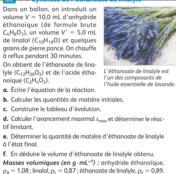 - Réaction chimique : réactif limitant, stoechiométrie, notion d’avancement.